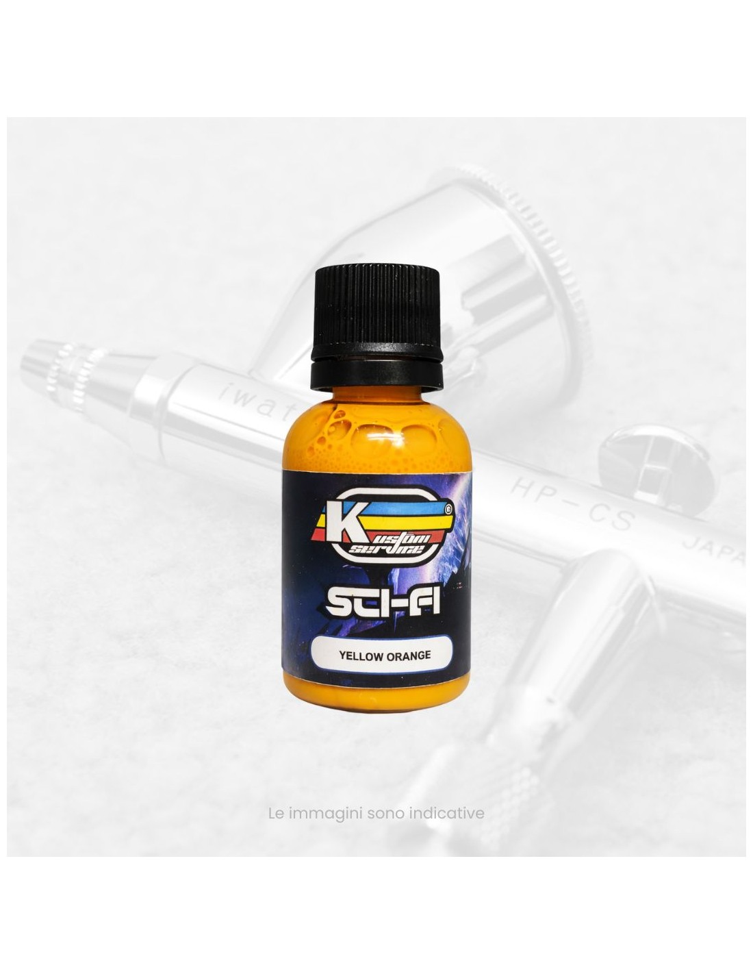 Gelb orange Acryl farbe für Bedruckung und Lackierung custom, Modellierung, Dioramen, Actionfiguren, Dekoration auf Stoffen und Leder, Holz, Lexan und vielen anderen Materialien. Ungiftiges Aerographenprodukt 0,3 und verdünnbar nach Belieben für kleinere Köpfe.