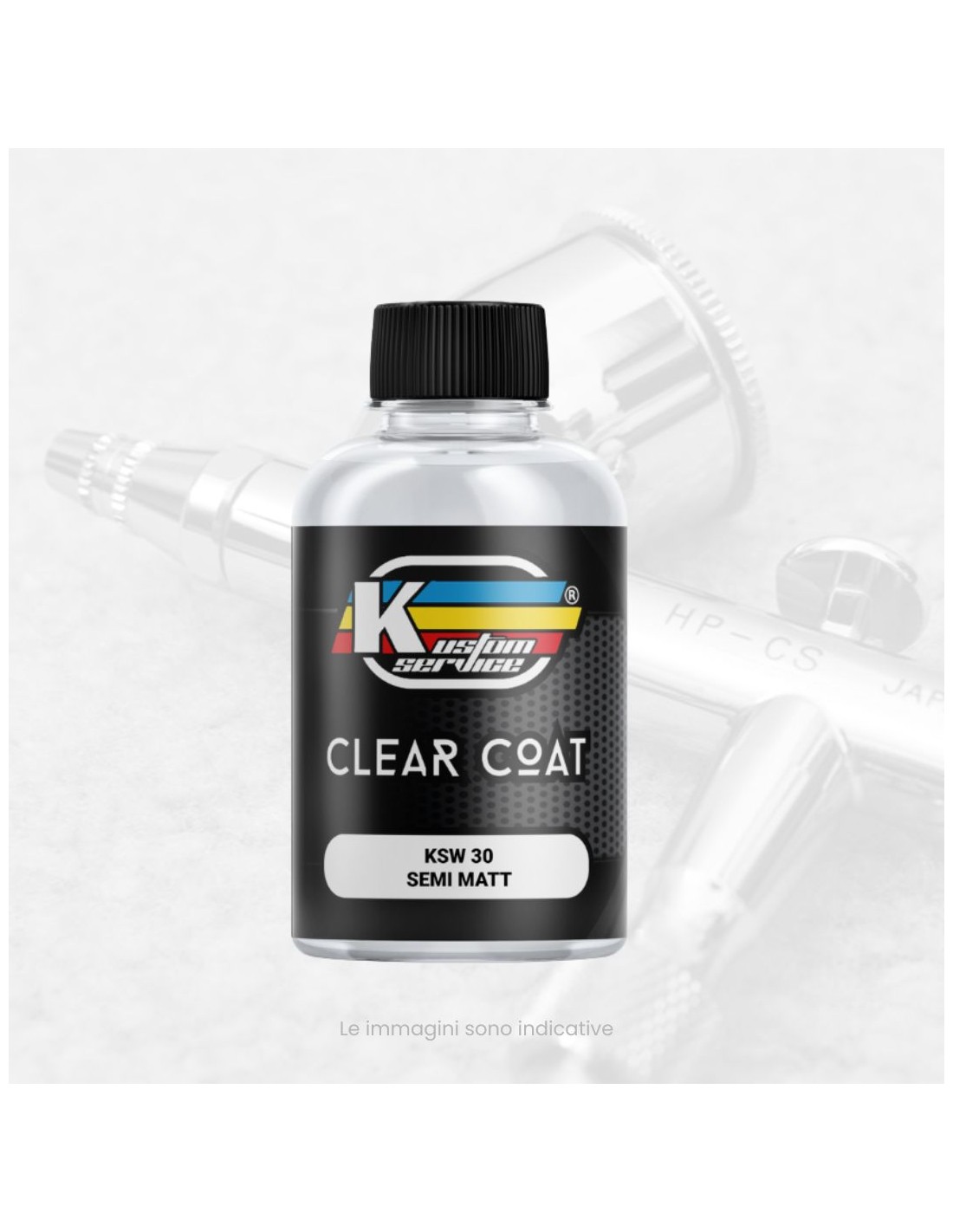 KSW60 es el acabado semi-brillante ideal para completar el trabajo con superficies de acero cepillado o modelos de automóviles viejos o envejecidos, piezas especiales que requieren efectos de goma y tubos negros semi-brillantes.