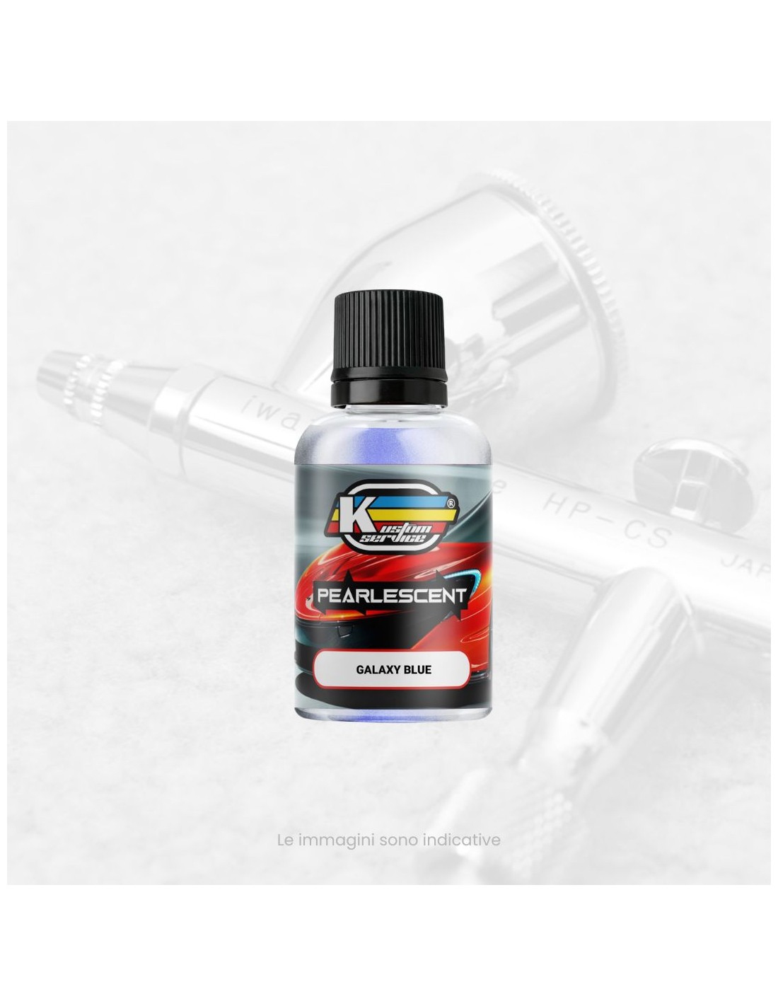 Cristal azul de color acrílico perla con alto reflejo (si se aplica sobre una base negra se vuelve completamente azul si se aplica sobre una base blanca muestra azul más claro, si se aplica a otros colores no por un efecto) para aerógrafo de agua profesional. Este producto es el mismo que utilizamos en la aerografía profesional. Los colores metálicos son extremadamente vibrantes y brillantes, se aplican sobre una base de color específica indicada en las instrucciones. Agua producto no tóxico.
