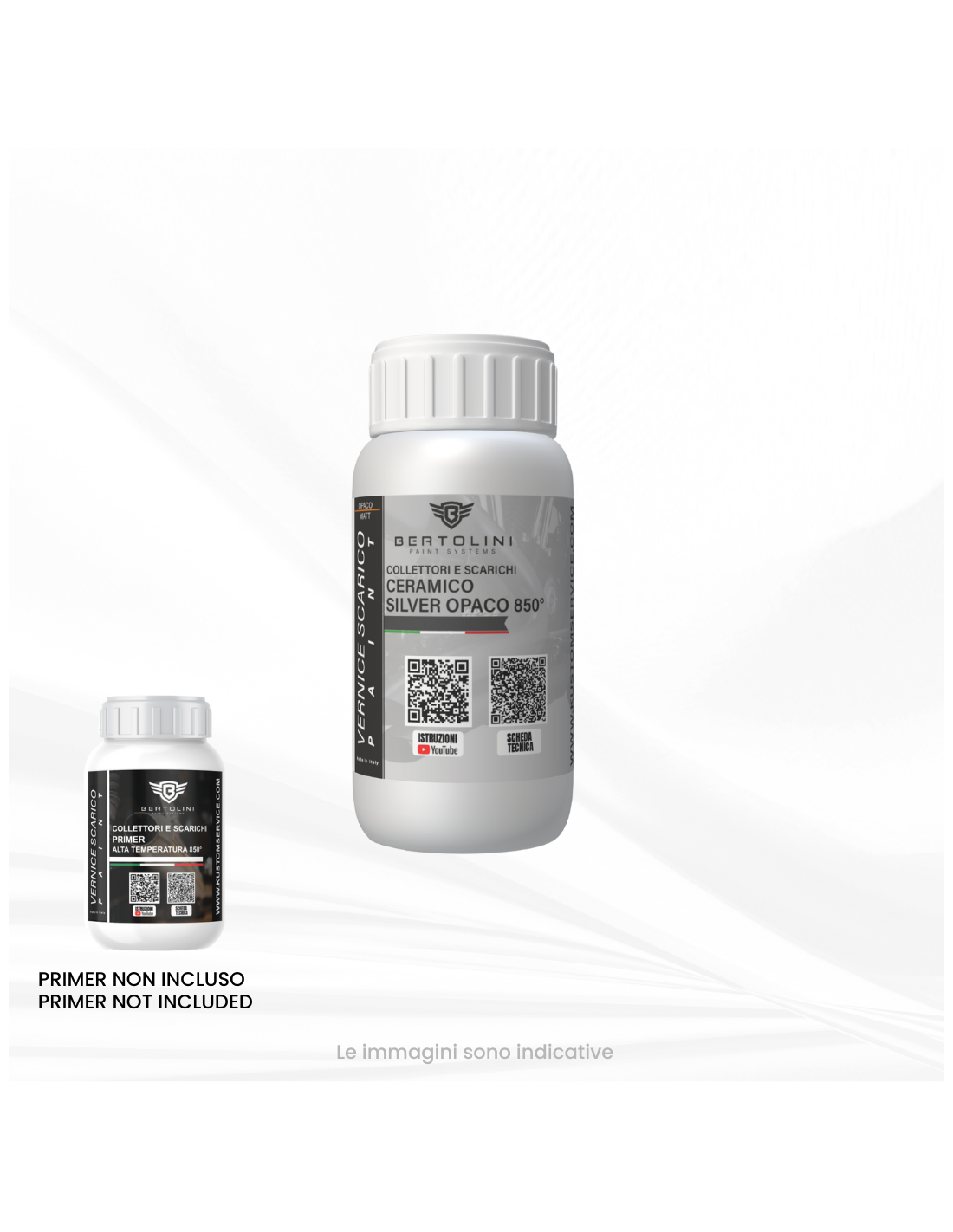 Nous produisons également une peinture qui résiste jusqu'à 1800 degrés, mais uniquement sur demande via WhatsApp au +393342272665.