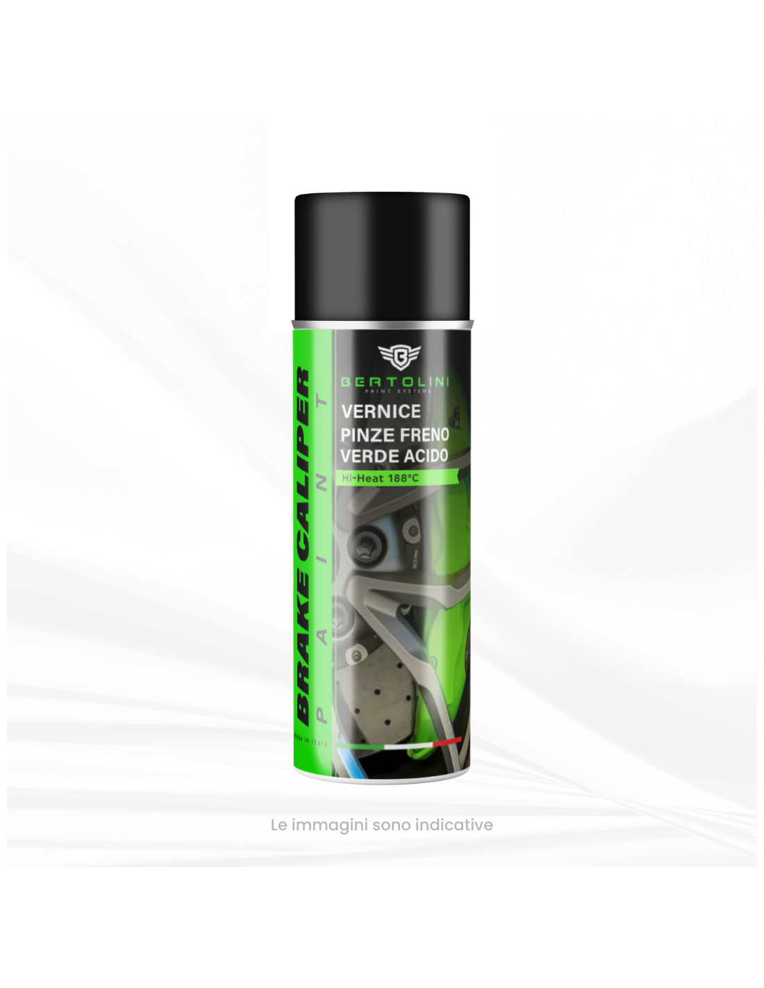 VERNICE ALTA TEMPERATURA SPRAY PER PINZE FRENO VERDE ACIDO MONO COMPONENTE RESISTENTE ALLA BENZINA E AGENTI CHIMICI.