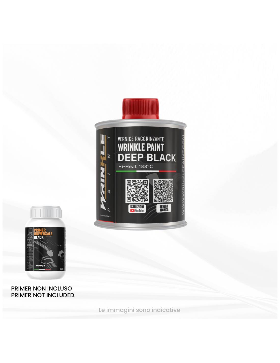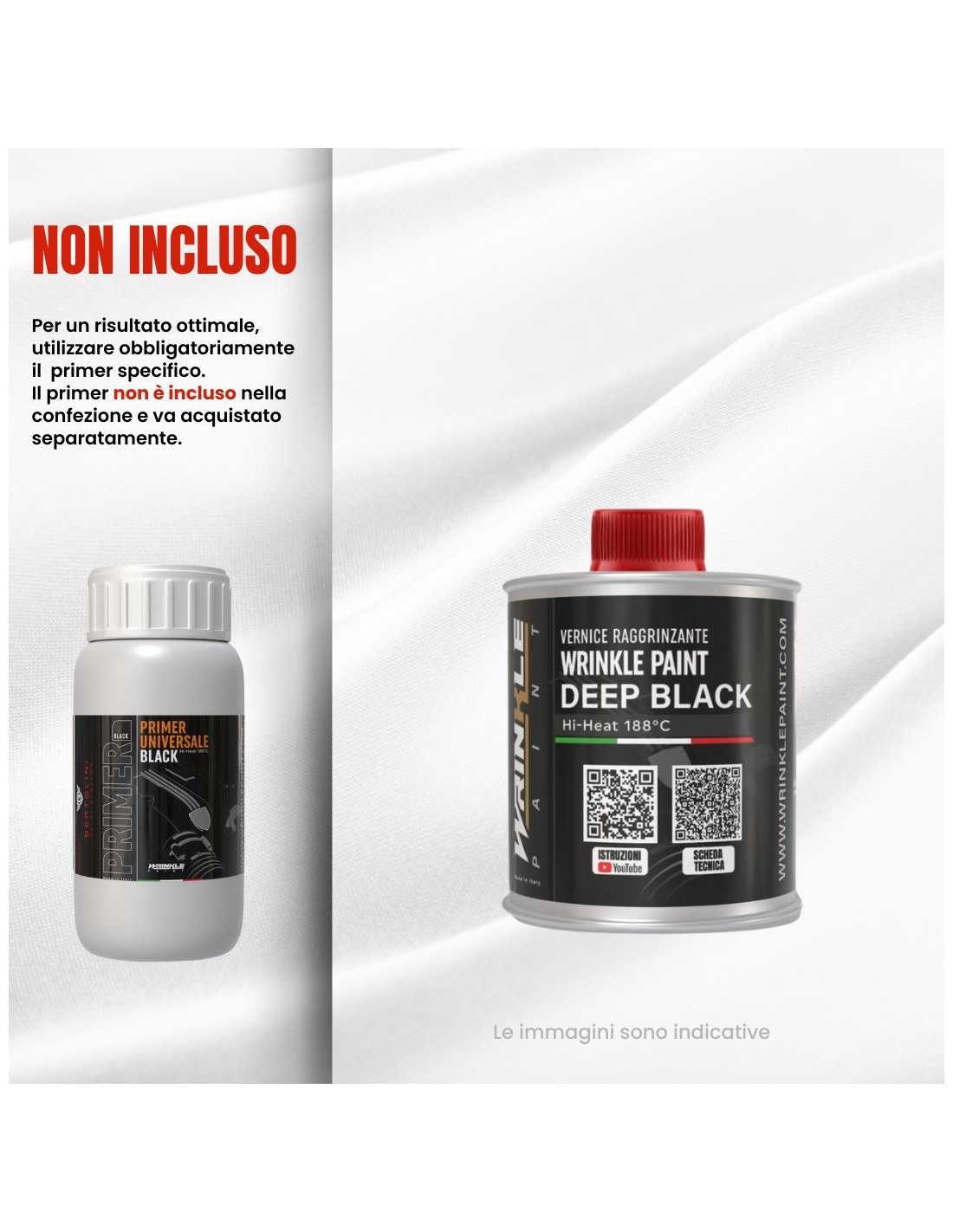 - La vernice raggrinzante Rossa, Gialla, Grigio devono essere applicate OBBLIGATORIAMENTE sul Primer Wrinkle Bianco